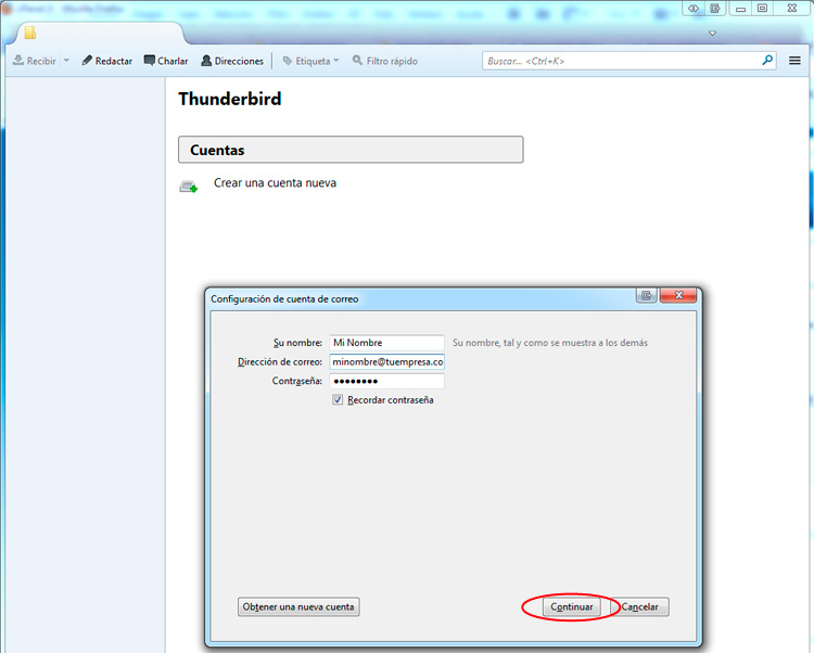 Una vez que hemos creado nuestra cuenta de correo en nuestro panel de control cPanel, solo debemos acceder a Mozilla Thunderbird y seguir estos pasos: