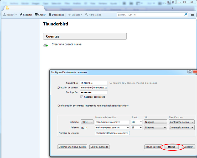 Nota: Si aparece alguna advertencia de seguridad, no quiere decir que nuestro correo este inseguro, solo que Mozilla Thunderbird nos advierte por no tener un Certificado de Seguridad SSL.